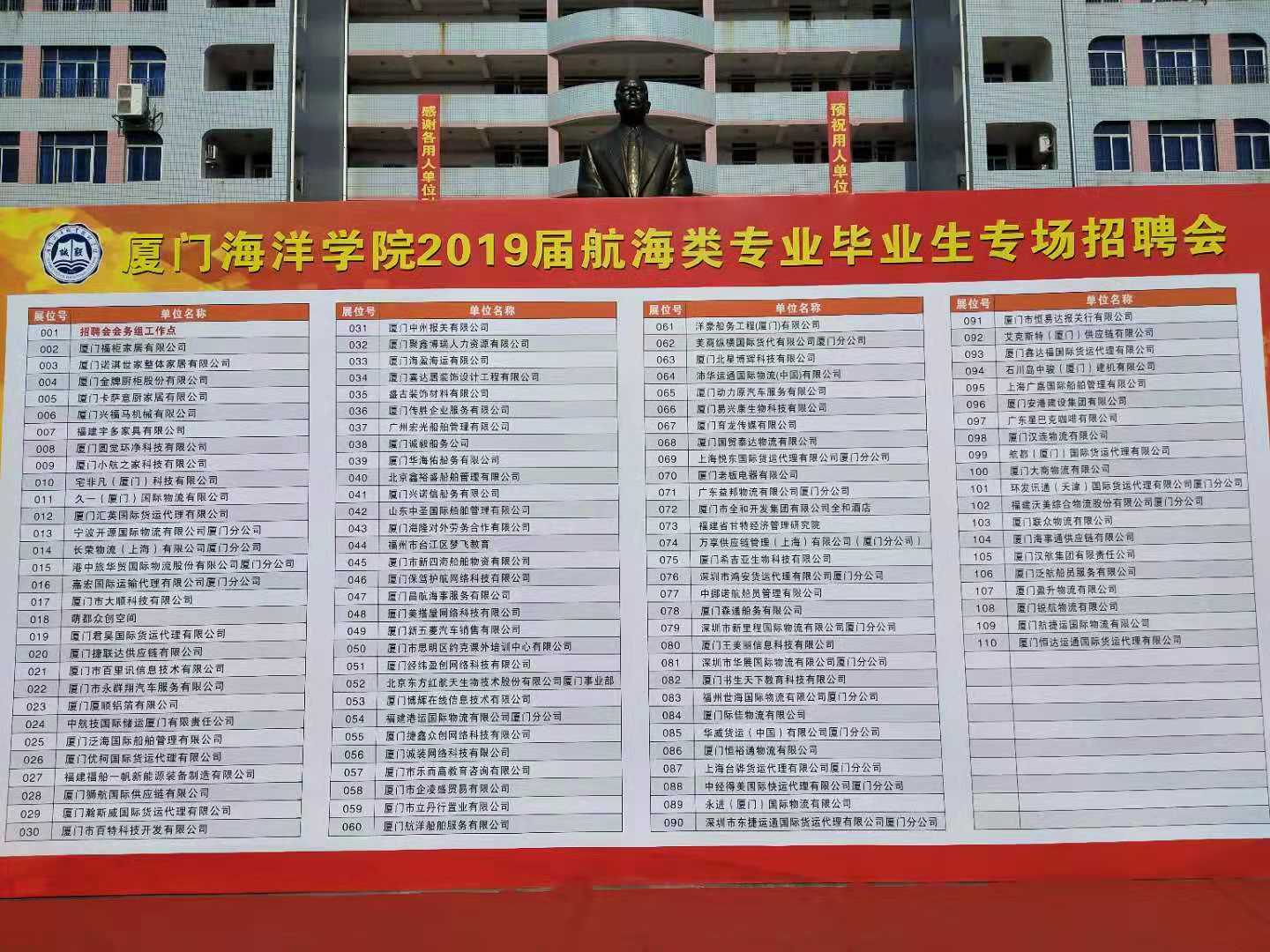 2018年11月21日 廈門海盈海運(yùn)有限公司行政人事部代表公司前往廈門海洋學(xué)院參加2019屆航海類專業(yè)畢業(yè)生專場(chǎng)招聘會(huì)。